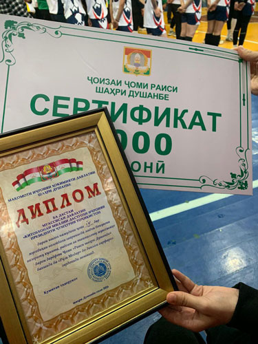 Дастаи бонувони волейболбози Муассисаи давлатии «Китобхонаи миллӣ»-и Дастгоҳи иҷроияи Президенти Ҷумҳурии Тоҷикистон дар мусобиқаи кушоди варзишӣ оид ба волейболи касбӣ ва ғайрикасбӣ байни занону духтарони вазорату идораҳо ва ташкилоту муассисаҳо барои дарёфти «Ҷоми Раиси шаҳри Душанбе» сазовори ҷойи чорум гардид.