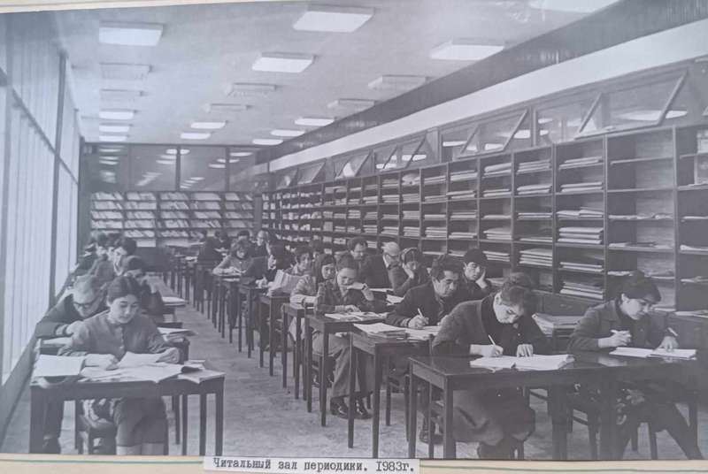 Дар акси ҷамъбастӣ толори хониши моломоли хонандаи Китобхонаро дар соли 1983 мебинед.